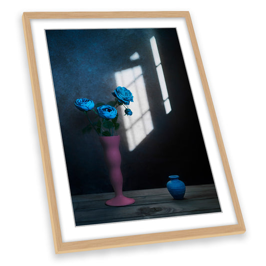 Window Light Blue Flowers Still Life FRAMED ART PRINT Picture Portrait Artwork