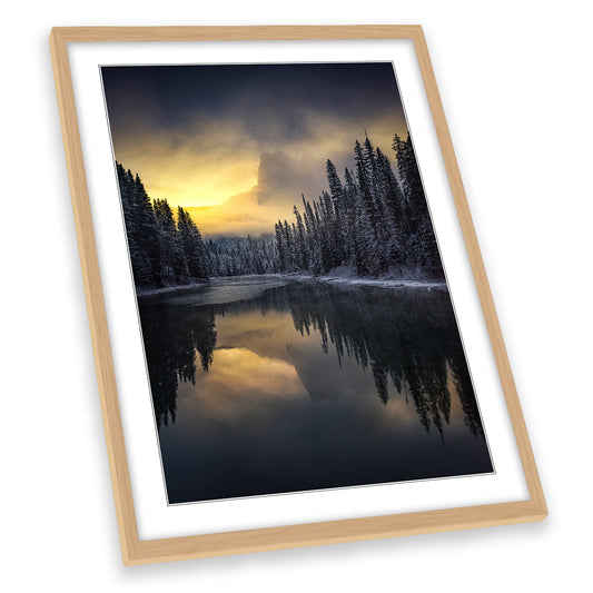 Winter Landscape Mountain Lake River FRAMED ART PRINT Picture Portrait Artwork