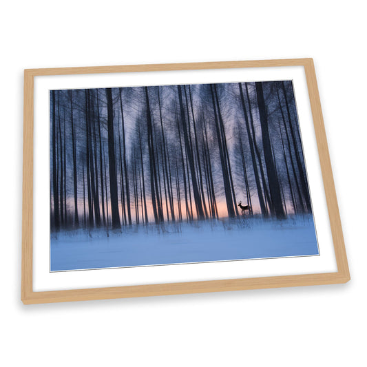 Winter Landscape Stag Deer Forest FRAMED ART PRINT Picture Artwork