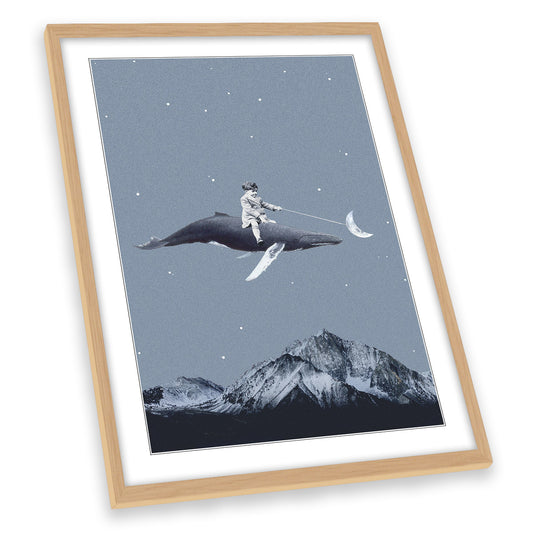 Aim for the Moon Surreal Whale Rider Blue FRAMED ART PRINT Picture Portrait Artwork