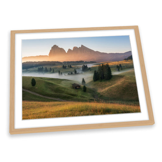 Alpe di Siusi Misty Mountain Landscape FRAMED ART PRINT Picture Artwork