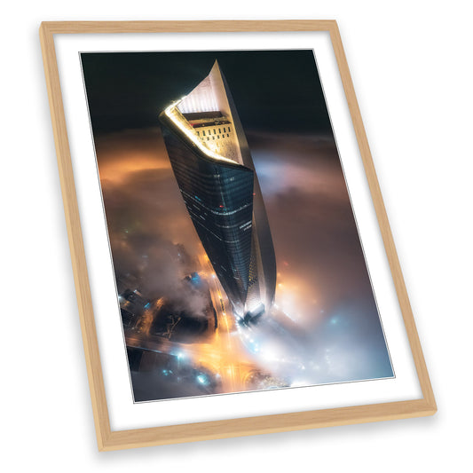 Alhamra Tower in Fog Kuwait City FRAMED ART PRINT Picture Portrait Artwork