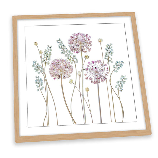 Allium Floral Flowers White FRAMED ART PRINT Picture Square Artwork